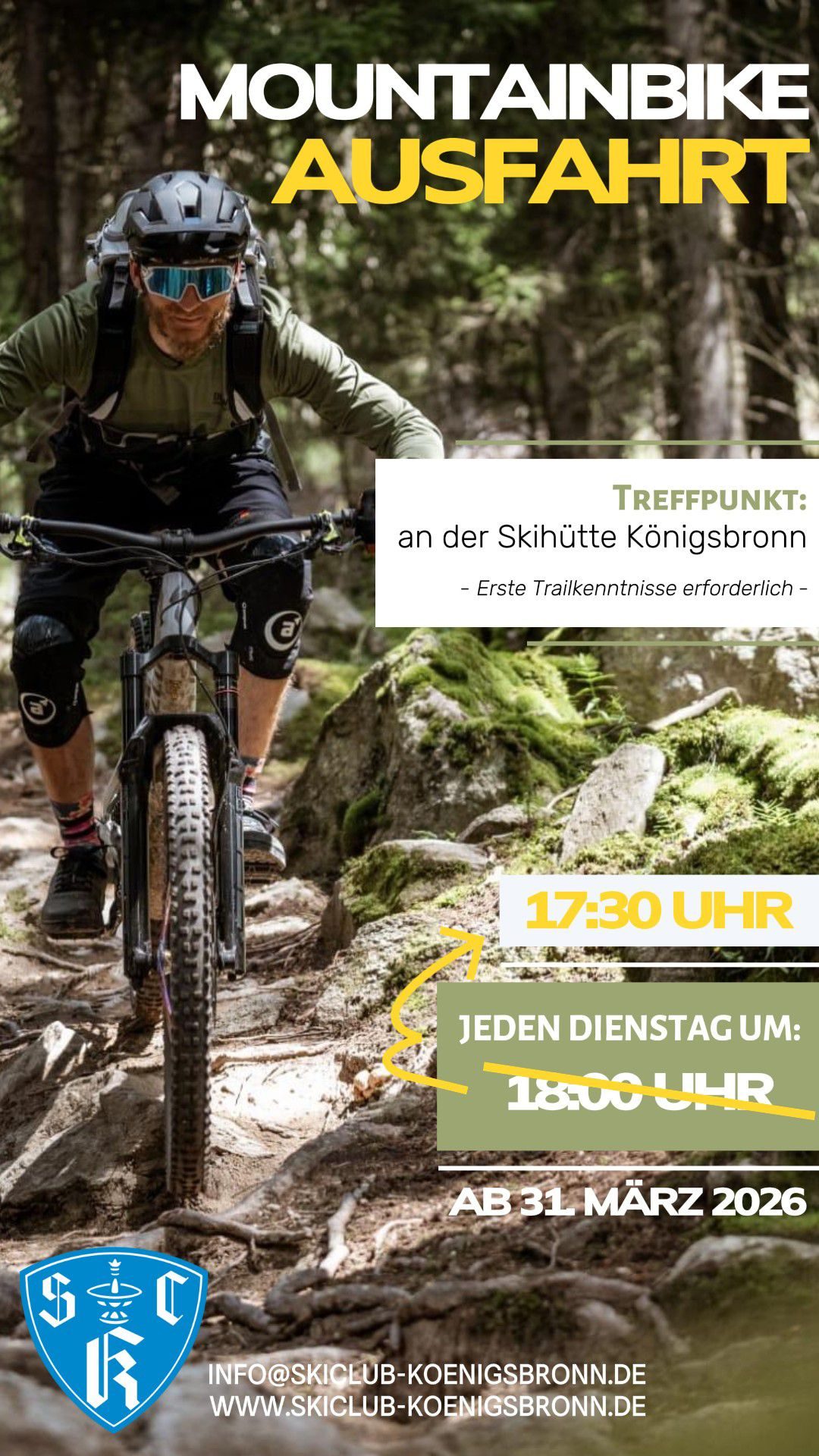 Der SkiClub Königsbronn lädt alle Bike-Begeisterten herzlich zur wöchentlichen Mountainbike-Ausfahrt ein. Jeden Dienstag um 17:30 Uhr geht es gemeinsam auf abwechslungsreiche Touren rund um Königsbronn.